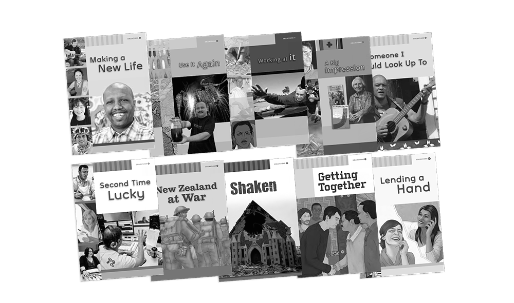 The Reading Collections are part of a suite of linked materials to support adult literacy learning. The materials include books for learners and audio versions of the books. The stories in 'Collections' were originally developed for the school sector, and have since been tested and edited to suit adult learners. They contain a range of reading material, in New Zealand contexts and settings.