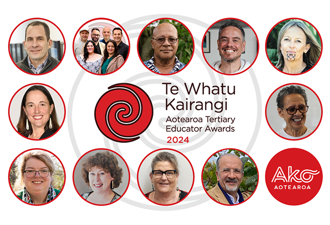 In 2024, 10 individuals and 1 group of teachers received Te Whatu Kairangi – Aotearoa Tertiary Educator Awards for their contribution to tertiary teaching and learning under the General, Kaupapa Māori, Le Moana Mua, and new Te Tohu Reo categories.